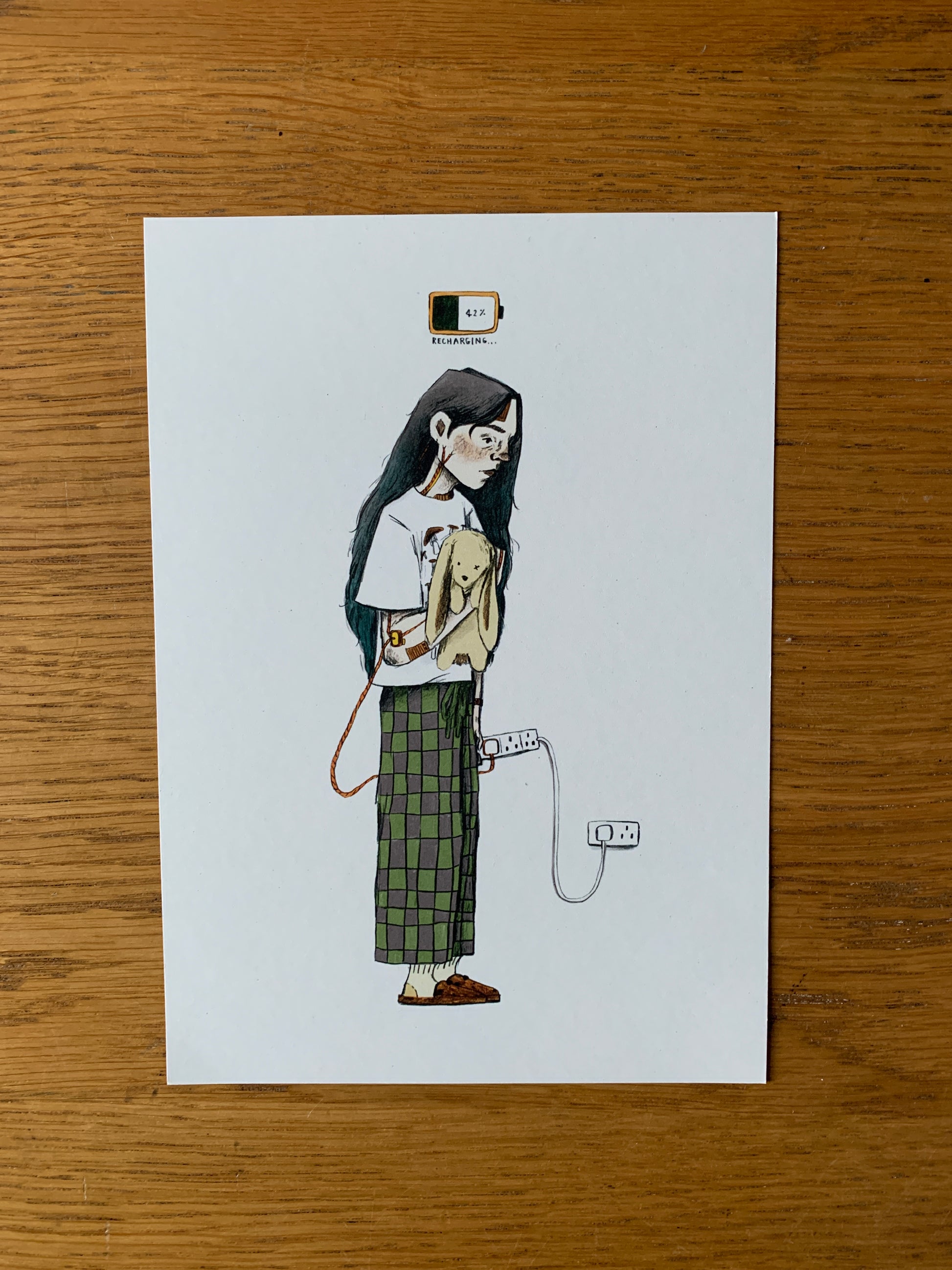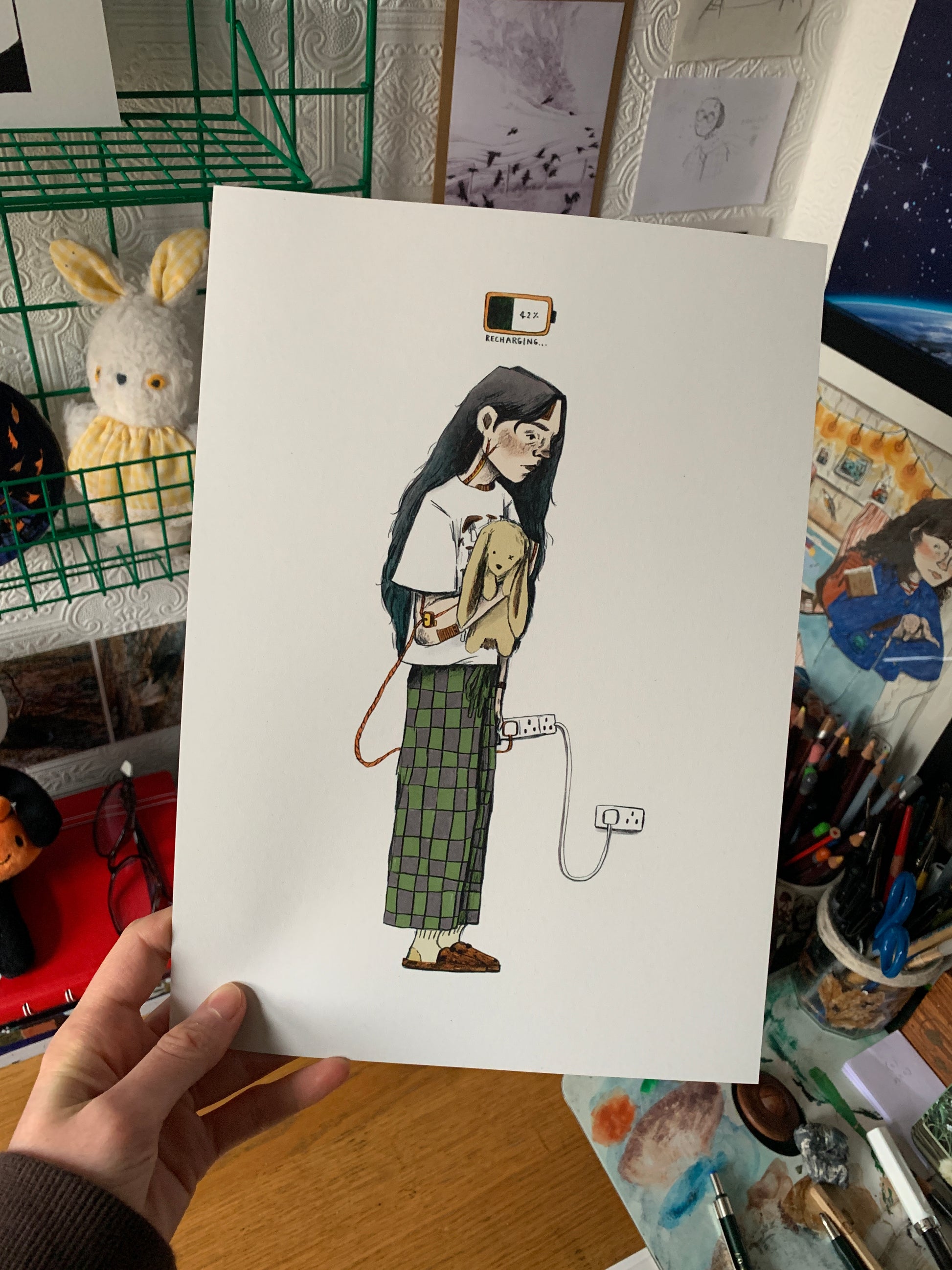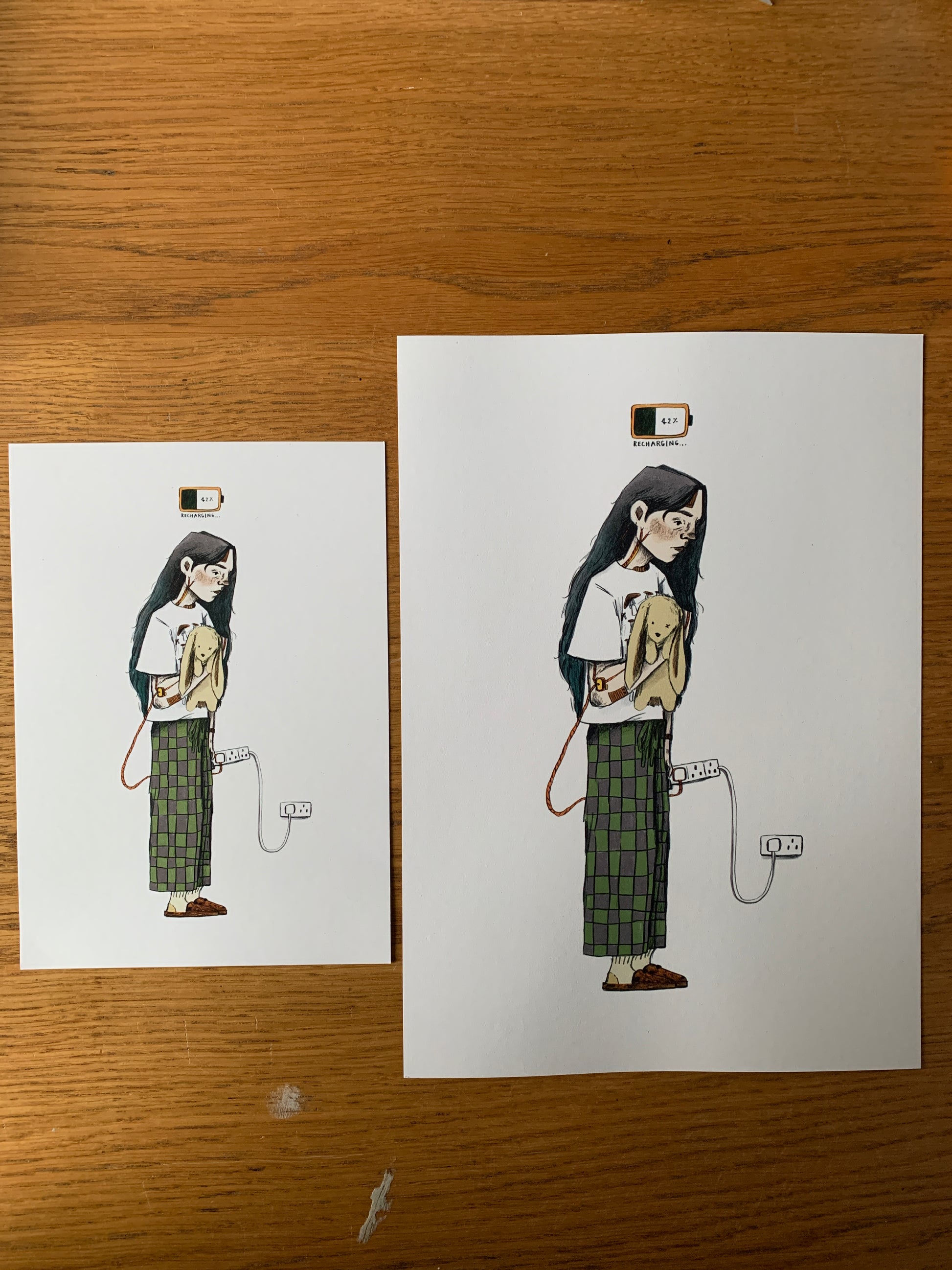 Printed on 300gsm (A5) and 250gsm (A4) on the Elephant Natural paper printed by Print.work, (I previously did more of my own printing but I am moving to primarily outsourcing my prints.) This paper has a slightly warm tone to it and may have very small natural flecks of colour.