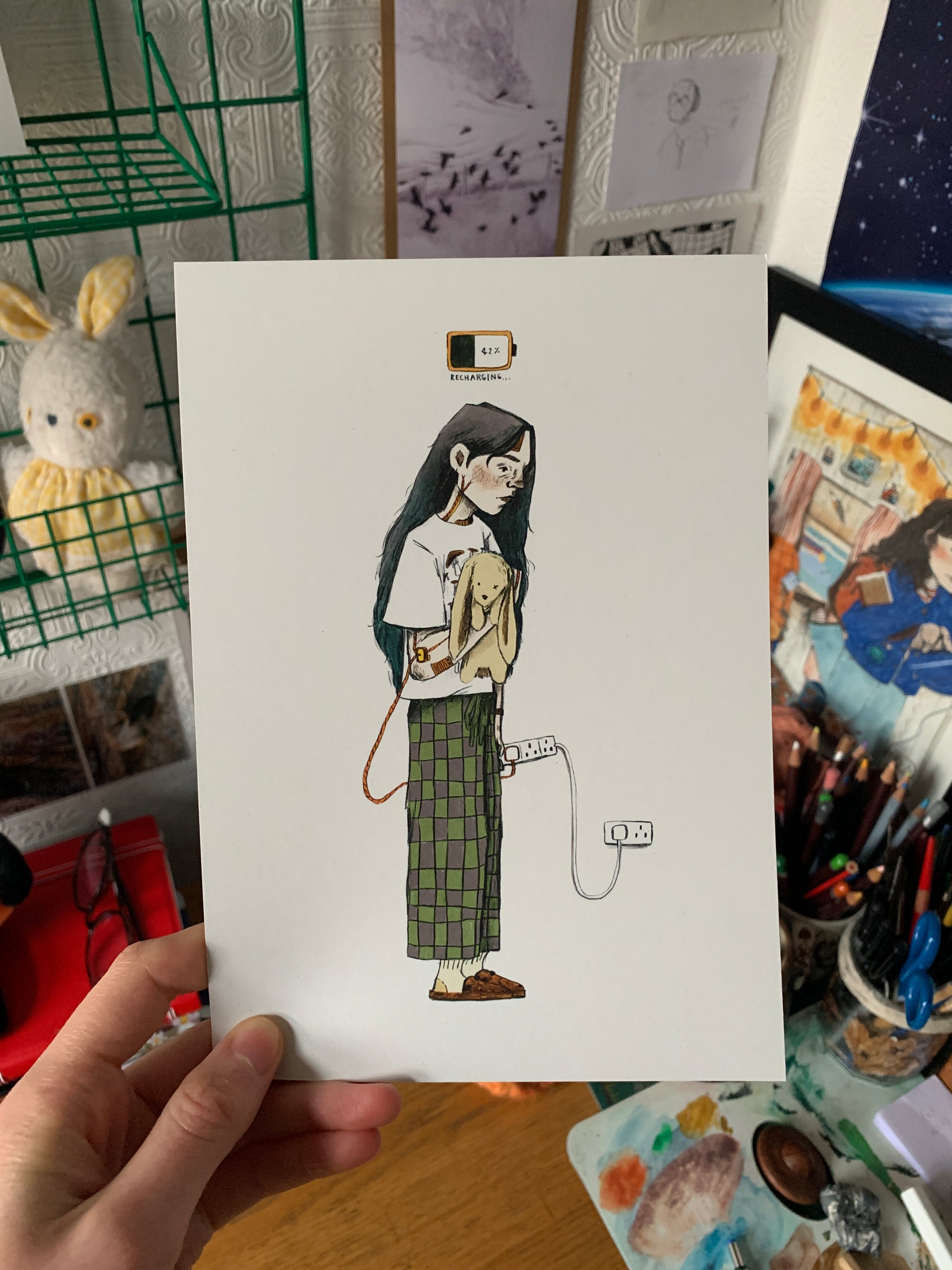This drawing was made both traditionally and digitally combining a traditional pencil drawing with finishing with digital colouring in procreate.