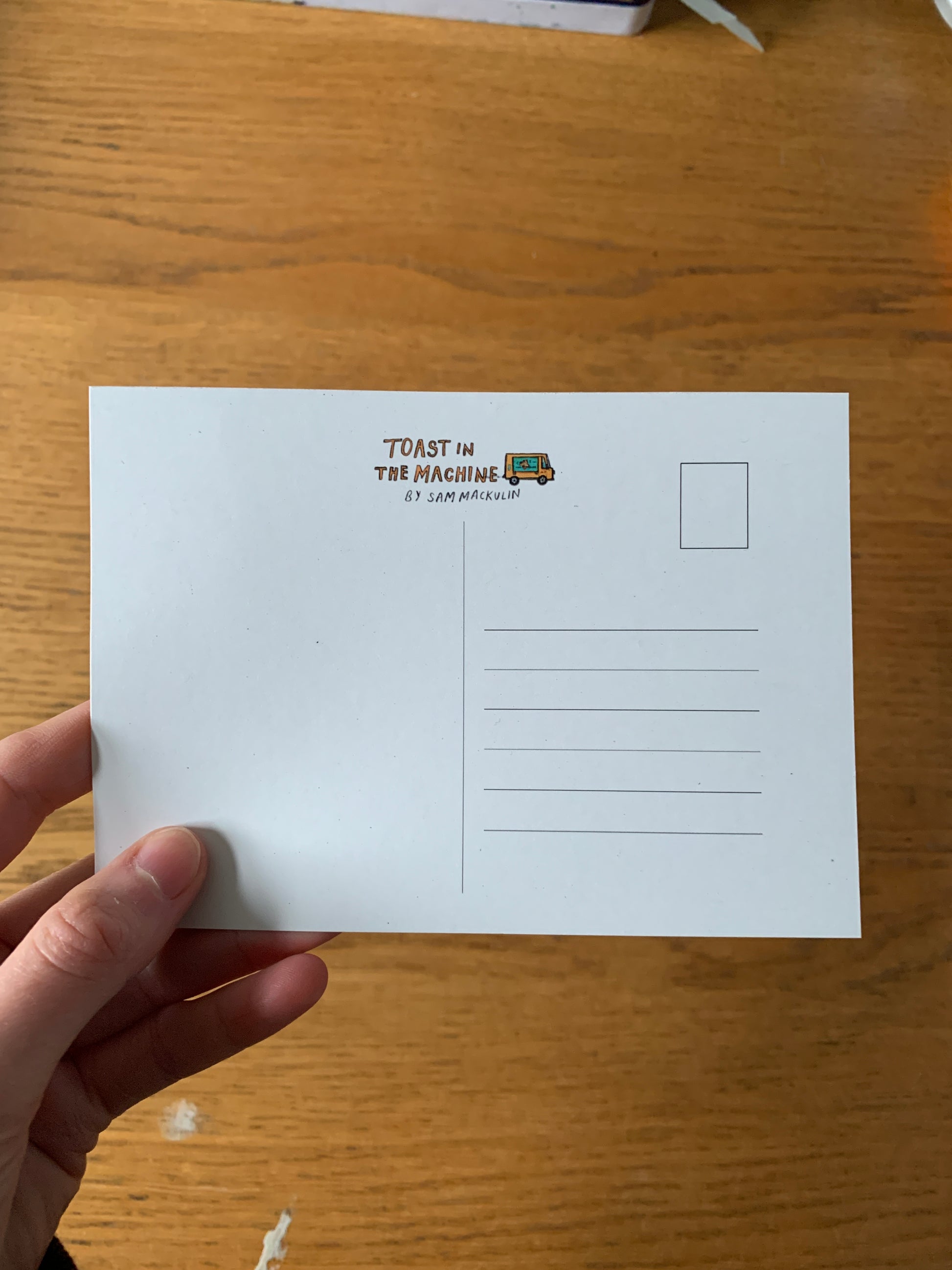 This postcard also has a typical postcard back with a small logo for my serial comic this is taken from 'Toast in the machine.'