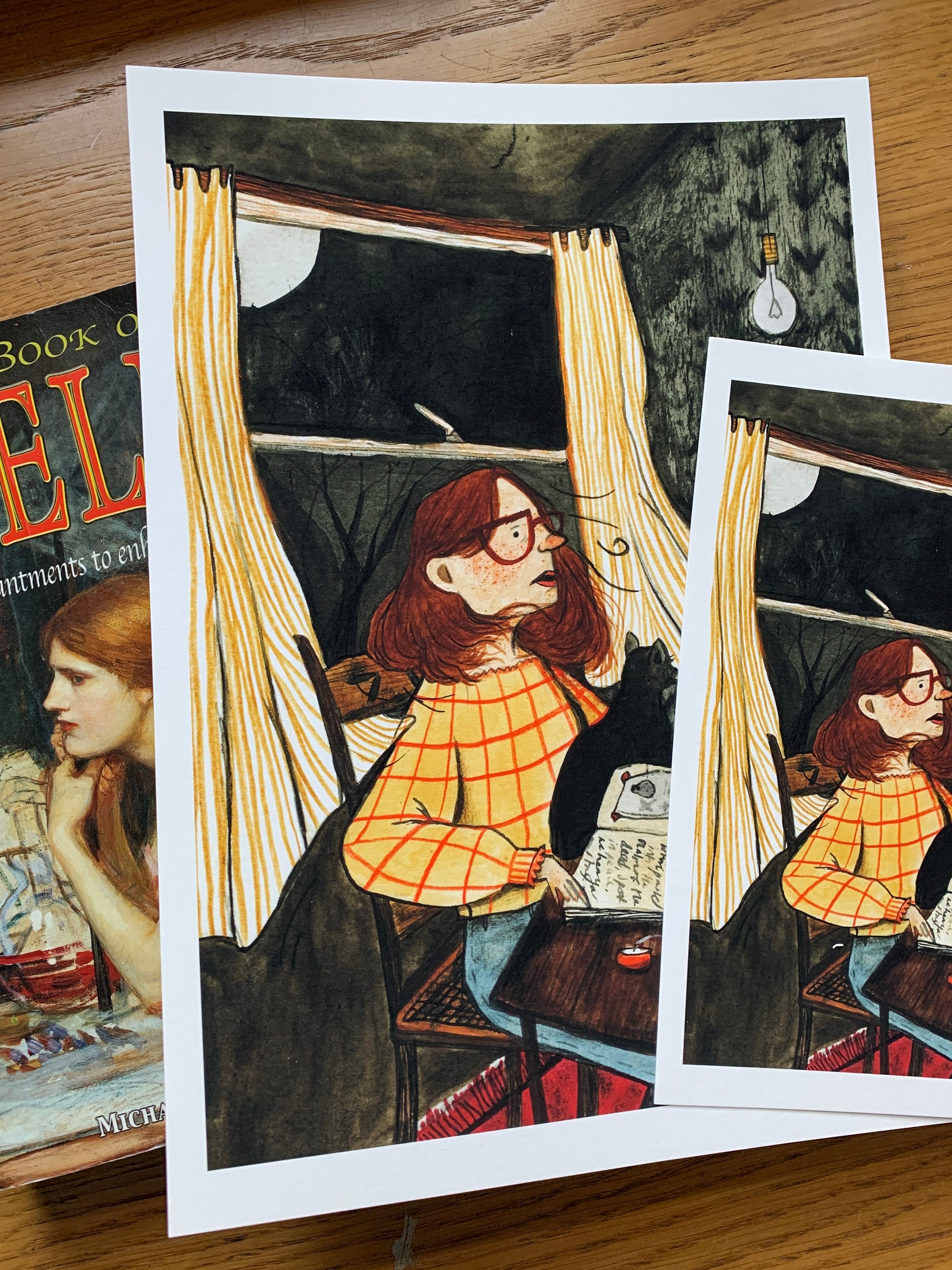 This is a print of a traditionally made drawing and painting in ink, watercolour, gouache, coloured pencils, crayons and pastels. My drawings are then only lightly edited in photoshop to bring out the colours and definition of the drawing.