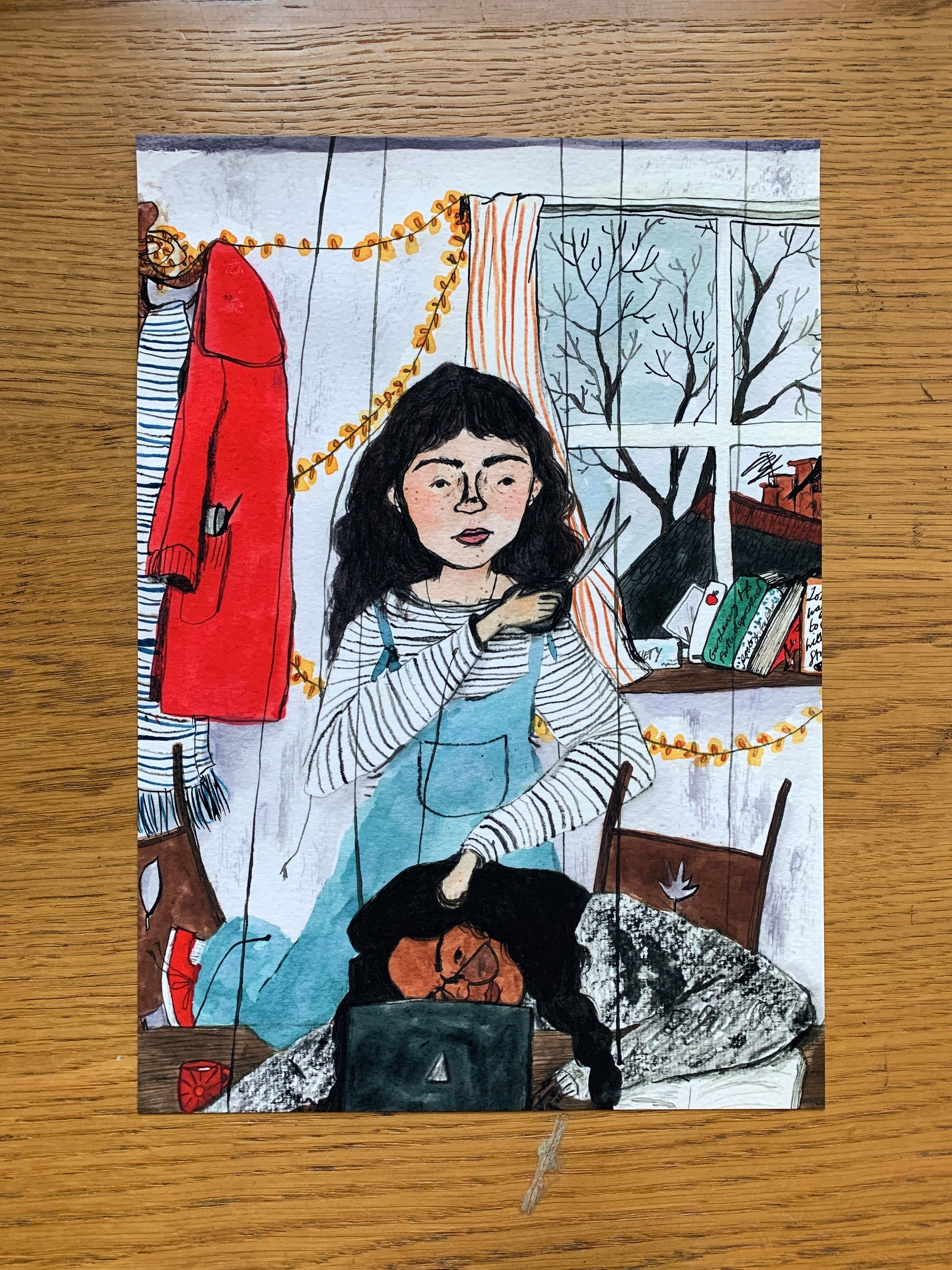 This is a print of a traditionally made drawing and painting in ink, watercolour, gouache, coloured pencils, crayons and pastels. My drawings are then only lightly edited in photoshop to bring out the colours and definition of the drawing.